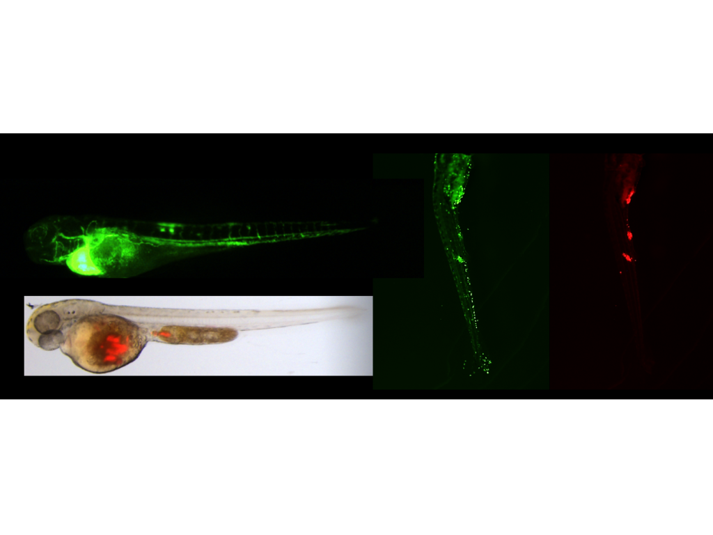 Zebrafisch-Larven (24h alt) werden mit fluoreszenzmarkierten Bakterien (mCherry-Staphylokokkus aureus, EGFP-Enterokokkus faecium, mCherry-Mykobakterium marinum) infiziert und anschließend mit zu testenden Wirkstoffen behandelt. Es kann eine lokale oder systemische Infektion ausgelöst werden. Einen Behandlungserfolg kann man mittels Fluoreszenzmikroskopie und der Überlebensrate feststellen. Mit M. marinum kann in den Larven eine Tuberkulose-ähnliche Symptomatik erzeugt und die Immunantwort mittels EGFP-Makrophagen verfolgt werden.